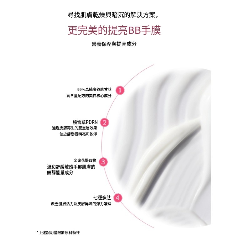 能夠撫平並滋潤乾燥的雙手,提亮並煥發光彩的膚色。