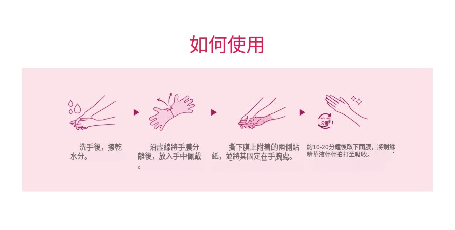 4. 大約 10 到 20 分鐘後取下,輕輕拍打剩餘精華以幫助吸收。