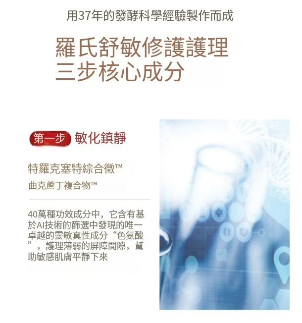 特別對於皮膚受損或民感肌膚,有著良好的再生能力,解決皮膚紅血絲和敏感問題。